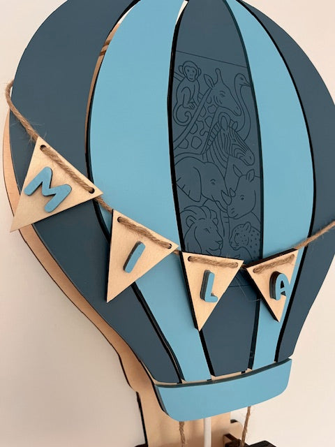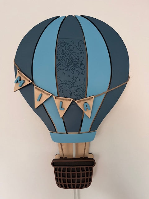Onze houten luchtballon lamp brengt warmte en gezelligheid in elke kamer , met leuke dieren print in het midden. Met een formaat van 40 x 27 cm is het een echte blikvanger aan de muur.